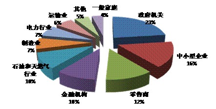 在俄羅斯,安防產品的主要消費者是政府機關、銀行、國防企業(yè)、石油天然氣行業(yè)、電力行業(yè)、通信業(yè)以及其他行業(yè)。石油天然氣行業(yè)、政府機關和電力行業(yè)仍然是安防設備的首要使用者。