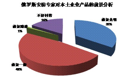 安防市場上,一些部門發(fā)現俄羅斯國產商品日漸取代了進口設備。與西方相比,俄羅斯國內制造商的主要優(yōu)點是低價位,且靈活性、適應性強。安防技術社會學服務處的數據表明,35%的專家認為俄羅斯安防市場的前景是好的;48%的認為不夠好;1%認為不好;16%的人覺得不好回答。